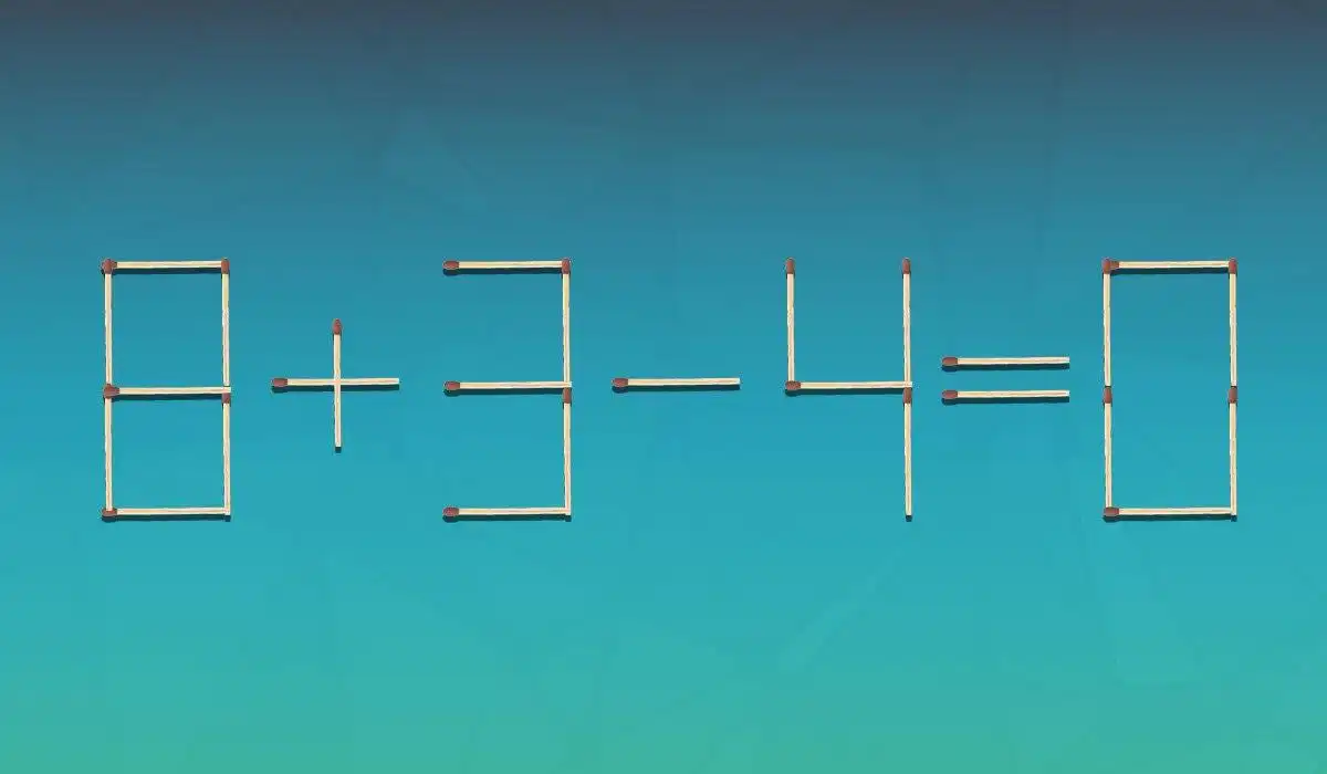 Esta clássica charada de fósforos desafia a sua lógica e visão espacial: a equação 8+3-4=0 está claramente errada, e você só pode mover um único palito para corrigi-la. A solução exige que você pense além dos números e veja os fósforos como formas que podem ser transformadas.