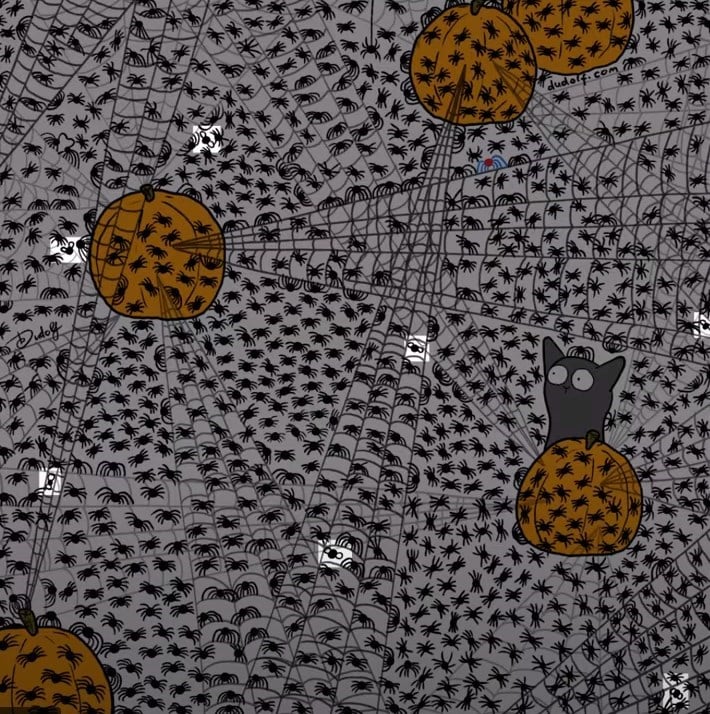 Imagina-te a examinar uma decoração de Halloween: uma grande teia de aranha, cheia de abóboras sorridentes e muitas, muitas aranhas de oito patas. O artista Gergely Dudás criou esta cena aparentemente coerente, mas escondeu nela sete intrusos. A tua missão, caso aceites, é encontrá-las todas em apenas 11 segundos. Parece simples? A ilusão está precisamente na homogeneidade. O teu cérebro vai querer agrupar tudo como “aranhas e abóboras”, e é aí que as moscas passam despercebidas. Este tipo de puzzle não mede apenas a velocidade, mas a tua capacidade de quebrar um padrão estabelecido.