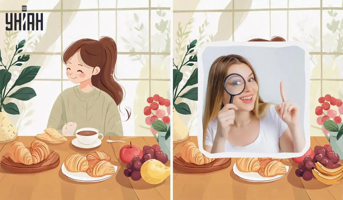 Vamos ao cenário: tens diante de ti duas imagens que mostram uma jovem descontraída a desfrutar do seu pequeno-almoço na cozinha. Ela segura uma chávena quente, possivelmente de café ou chá, enquanto à sua frente repousam croissants apetitosos e uma taça de fruta. À primeira vista, tudo parece absolutamente igual. No entanto, escondidas à vista desarmada, existem quatro alterações subtis. O teu objetivo é detetá-las todas num curto espaço de apenas 11 segundos. Estás preparado? Conta até três e começa!