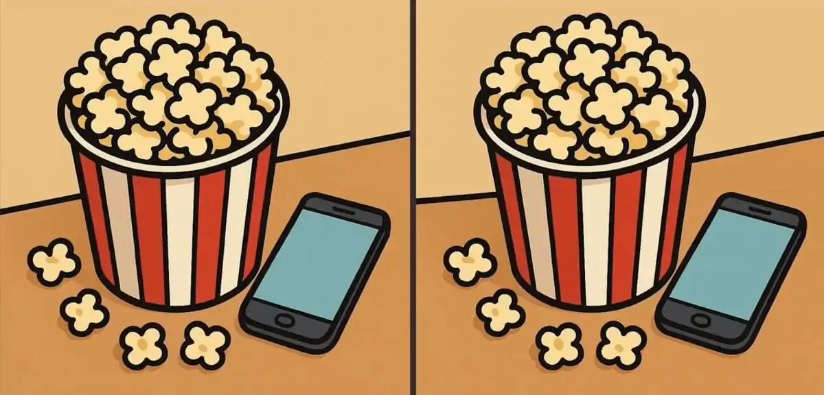 À sua frente estão duas imagens quase idênticas de um balde de pipocas. O desafio é encontrar três pequenas diferenças entre elas em apenas 51 segundos. A chave está em examinar cada elemento com calma, pois os detalhes mais sutis costumam ser os mais difíceis de detetar.