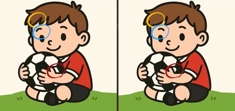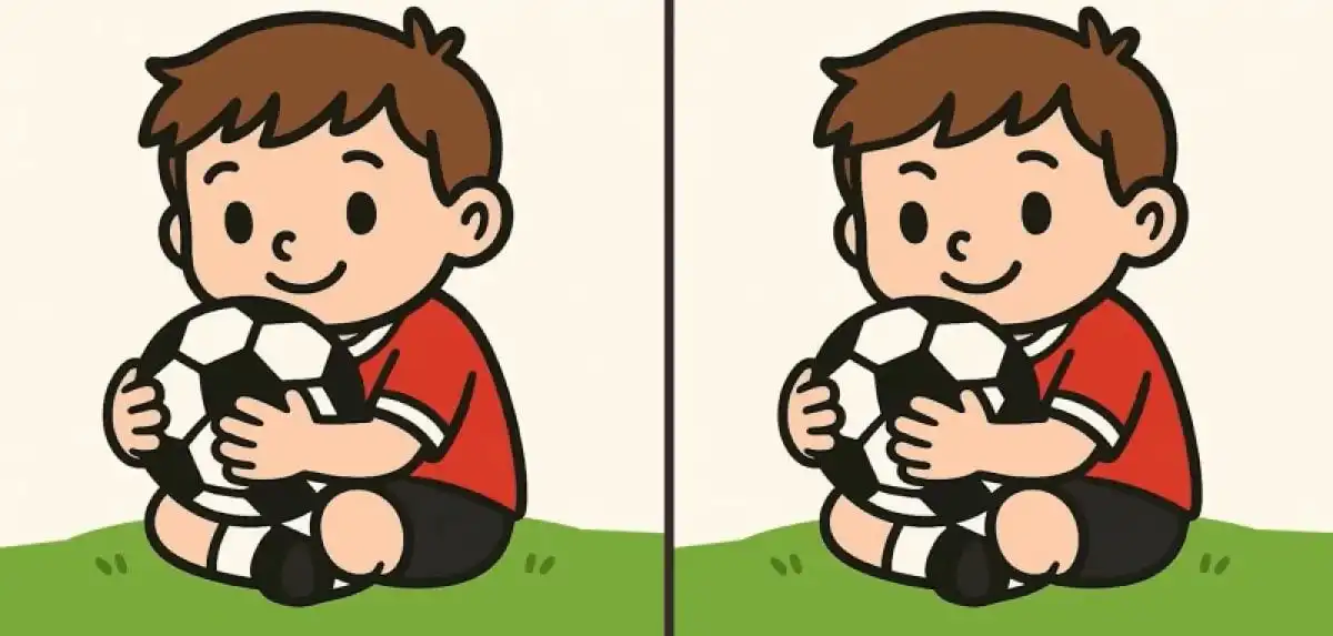 À sua frente estão duas imagens quase idênticas de um rapaz a jogar futebol. O desafio é encontrar três pequenas diferenças entre elas em apenas 49 segundos. A solução está nos detalhes mais subtis, desde uma linha que falta até ao posicionamento de um elemento no fundo.