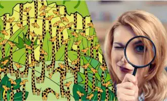 Esta é uma clássica ilusão de ótica que testa a sua atenção e capacidade de filtrar informações. Um objeto grande e óbvio, como um animal, domina a cena, mas o verdadeiro desafio está em encontrar um pequeno cogumelo escondido nos detalhes da floresta. A chave é não se deixar distrair pelo elemento principal.