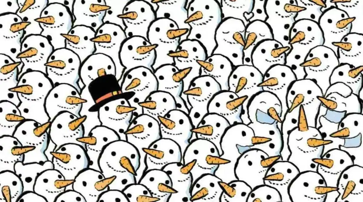 Os melhores quebra-cabeças visuais são aqueles que parecem simples à primeira vista, mas que escondem uma complexidade fascinante. É o caso deste: diante de ti está uma imagem repleta de bonecos de neve, organizados de forma quase simétrica. Todos seguem o mesmo padrão: três círculos empilhados, botões, braços de galho e um cachecol. A tua missão é encontrar o intruso – um urso polar – que se camuflou perfeitamente entre eles. Tens apenas 5 segundos. Parece fácil? A ilusão de ótica criada pela repetição torna esta tarefa um verdadeiro teste à tua agilidade visual.