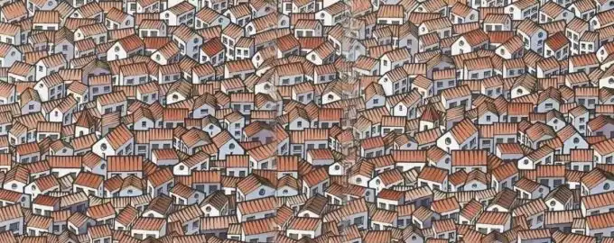 Esta ilusão de ótica desafia a sua atenção aos detalhes e percepção visual. Um gato está perfeitamente camuflado entre as casas, e encontrá-lo em 30 segundos requer um.