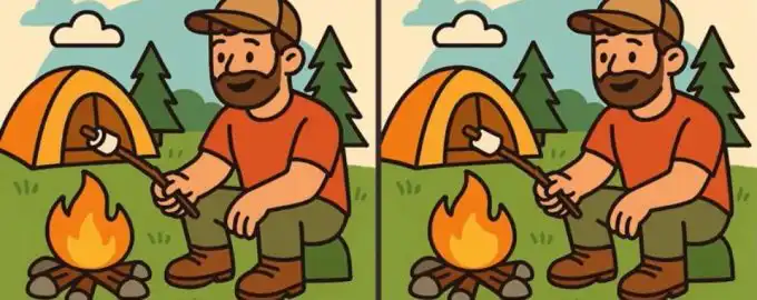 Consegues encontrar as três diferenças escondidas entre duas imagens aparentemente idênticas de um homem assando marshmallows? O tempo está a contar, e